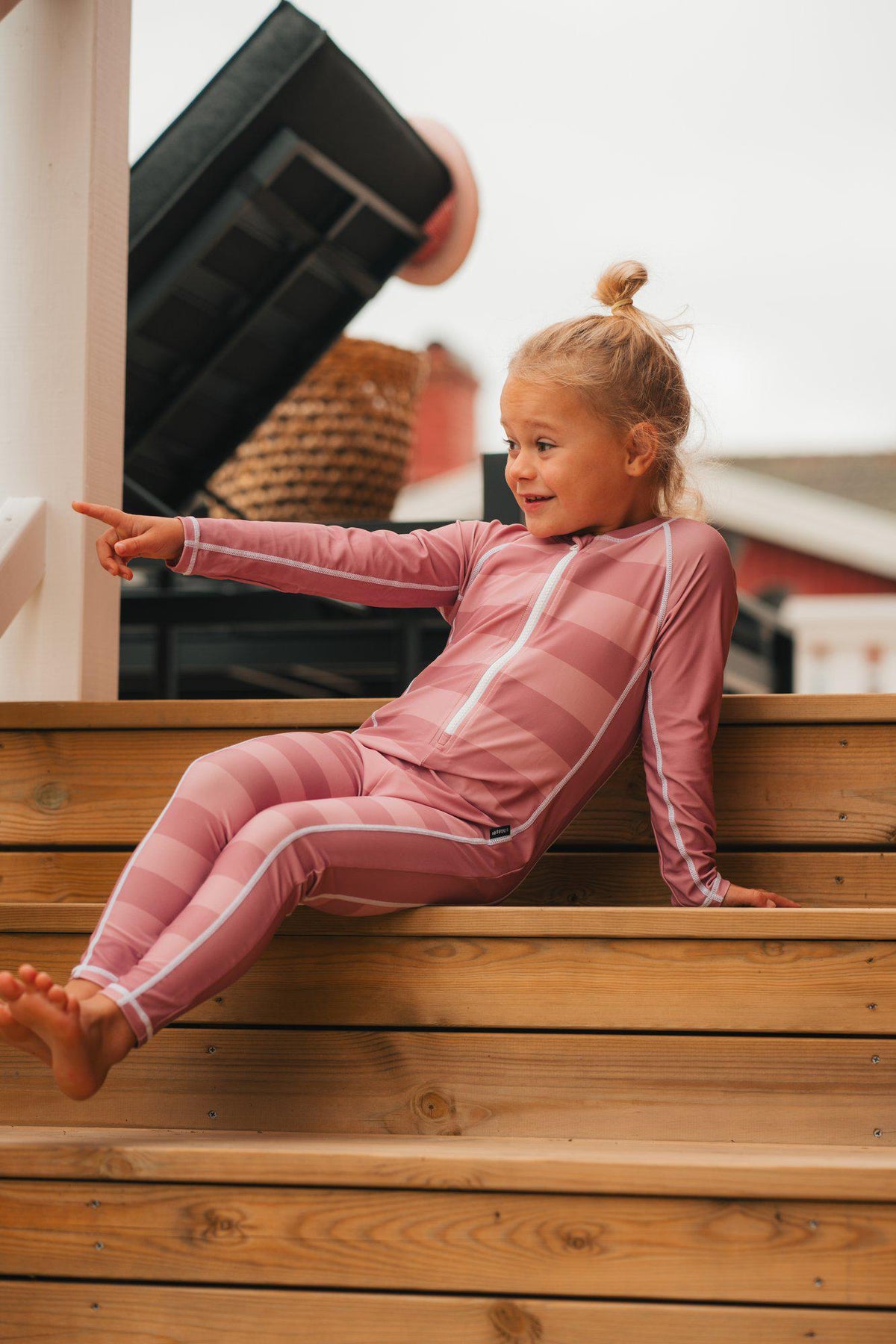 Solskyddsdräkten Hawaii har långa ärmar och ben som skyddar bra mot solens strålar. Den är tillverkad i ett välventilerande, snabbtorkande material med solskyddsfaktor (UPF) 50+ och har platta sömmar som inte skaver. Dragkedjan fram gör det lätt att komma i och ur och är skyddad på baksidan med extra tyg. Produkten är OEKO-TEX® Standard 100-certifierad.