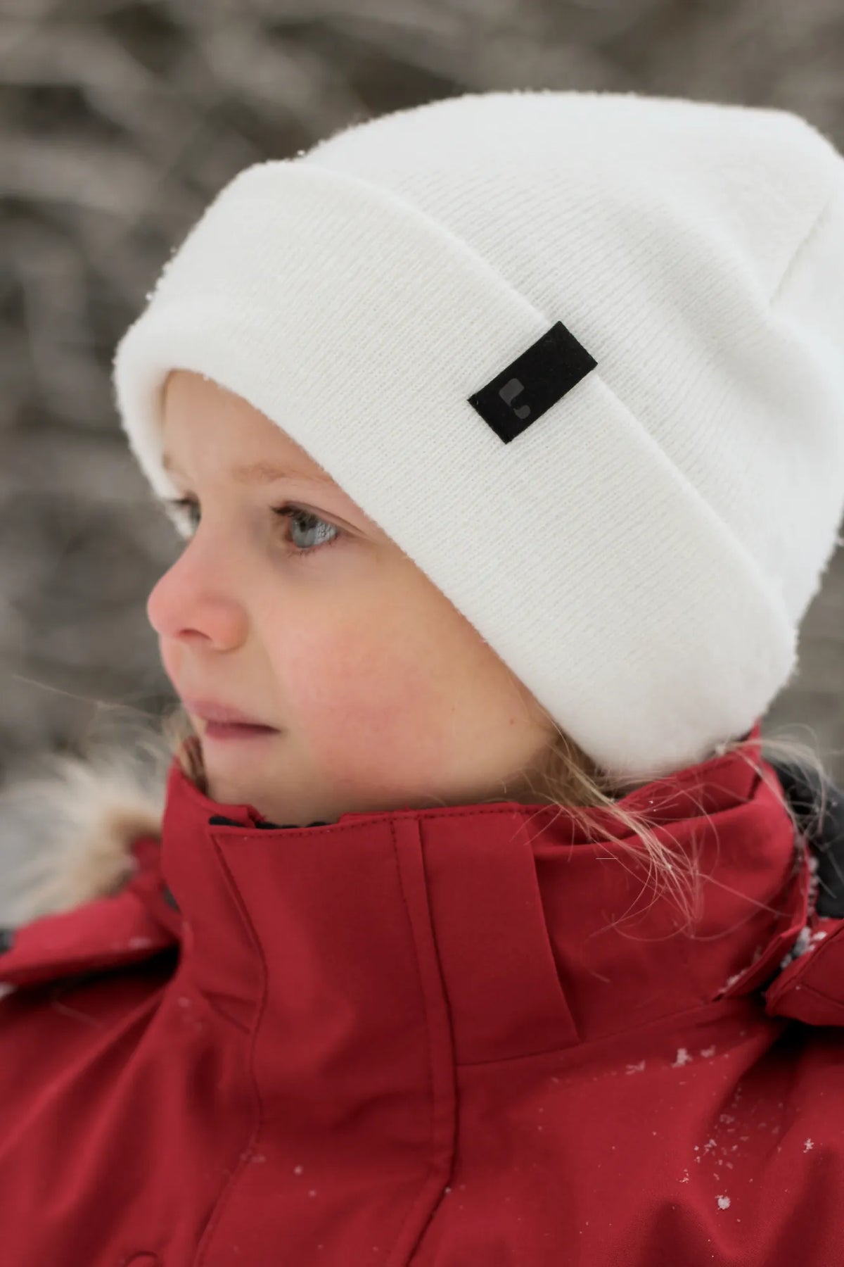 Mjuk och värmande mössa tillverkad i en mix av bland annat återvunnen polyester och ull. Passformen har varit i fokus och det lite bredare uppviket gör den extra tät kring öronen.