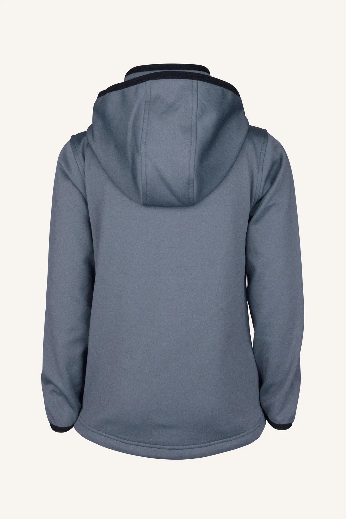 Serien PowerPRO är tillverkad i ett powerstretch-material med bra egenskaper som passar året om. Använd som lager- på-lager under de kallaste månaderna eller som ett ytterplagg under de varmare. Materialet är fukttransporterande och stretchigt med en slät yta för att öka hållbarheten. Huvan är avtagbar med knappar och jackan går att justera med dragsko längst ner. Den har också tumhål vid ärmslut, två sidorfickor med dragkedja och microfleece på insidan för en skön känsla mot huden.