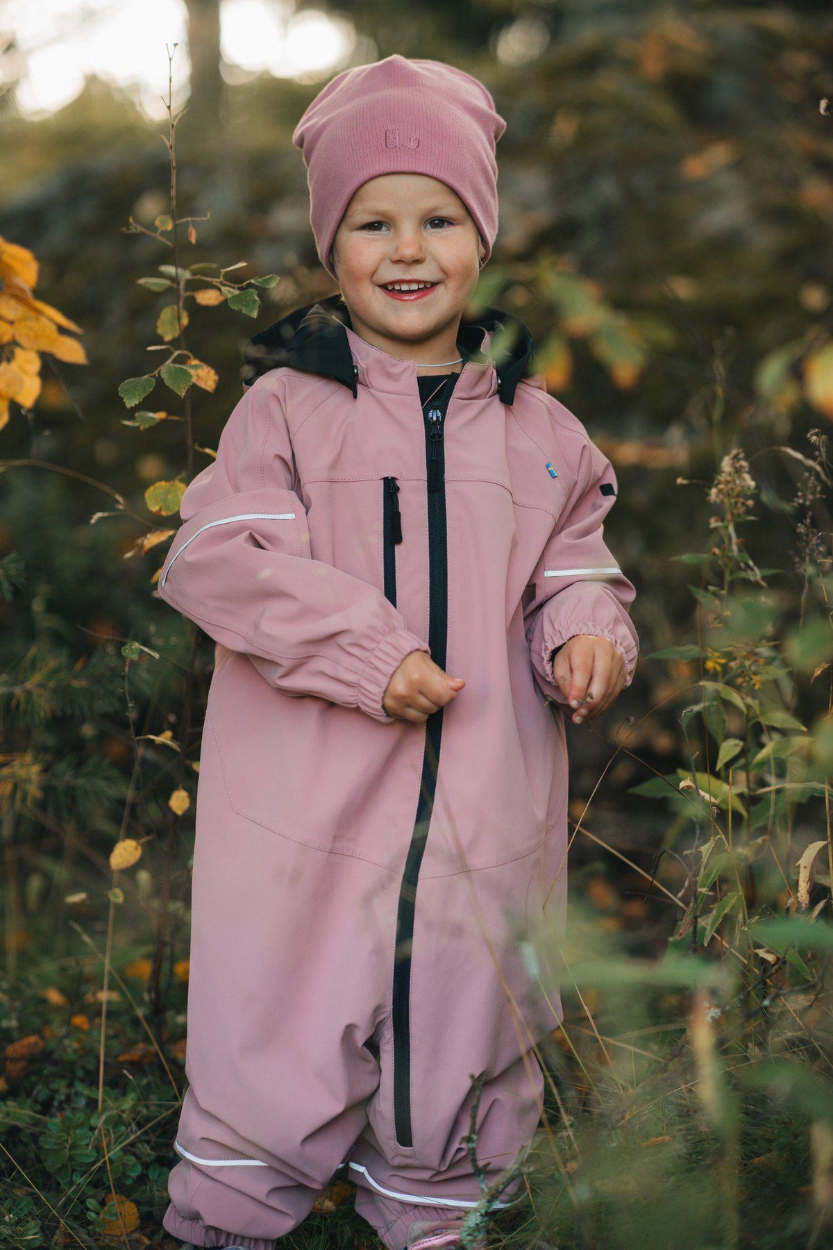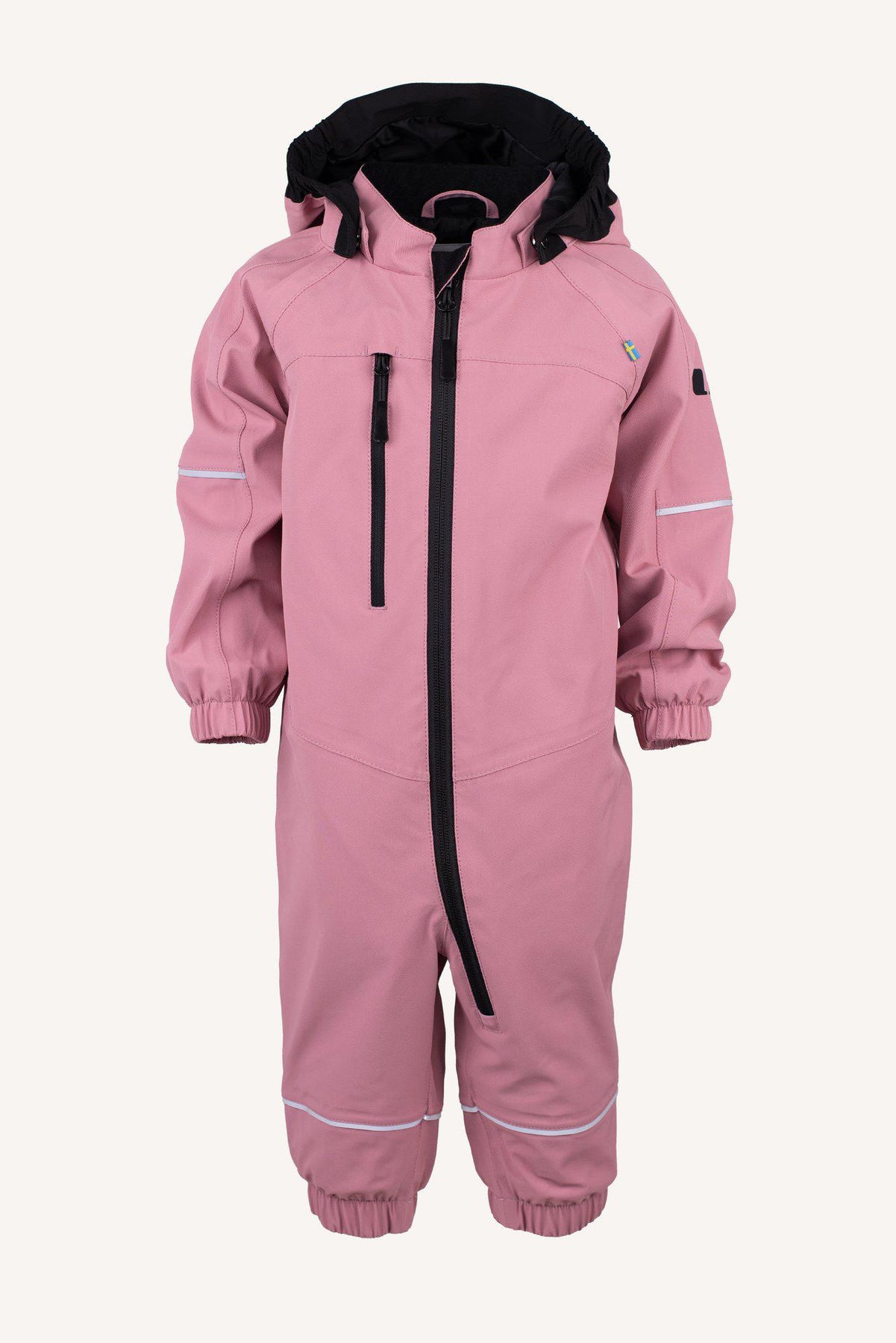 "Drammen" är vår mest funktionella skaloverall som skyddar mot både vind och vatten. Den har extra höga vattenpelare på 15000 mm, riktigt bra andningsförmåga och tejpade sömmar, allt för att klara olika väderlekar. Tyget är mjukt och stretchigt, med en lätt strukturerad yta som är enkel att torka av. Overallen har en justerbar midja, en lång frontdragkedja som gör det lätt att klä på barnet, avtagbar huva, nylonfoder, flera reflexdetaljer, resår i ben- och ärmslut och en bröstficka som öppnas/stängs med en dragkedja.
