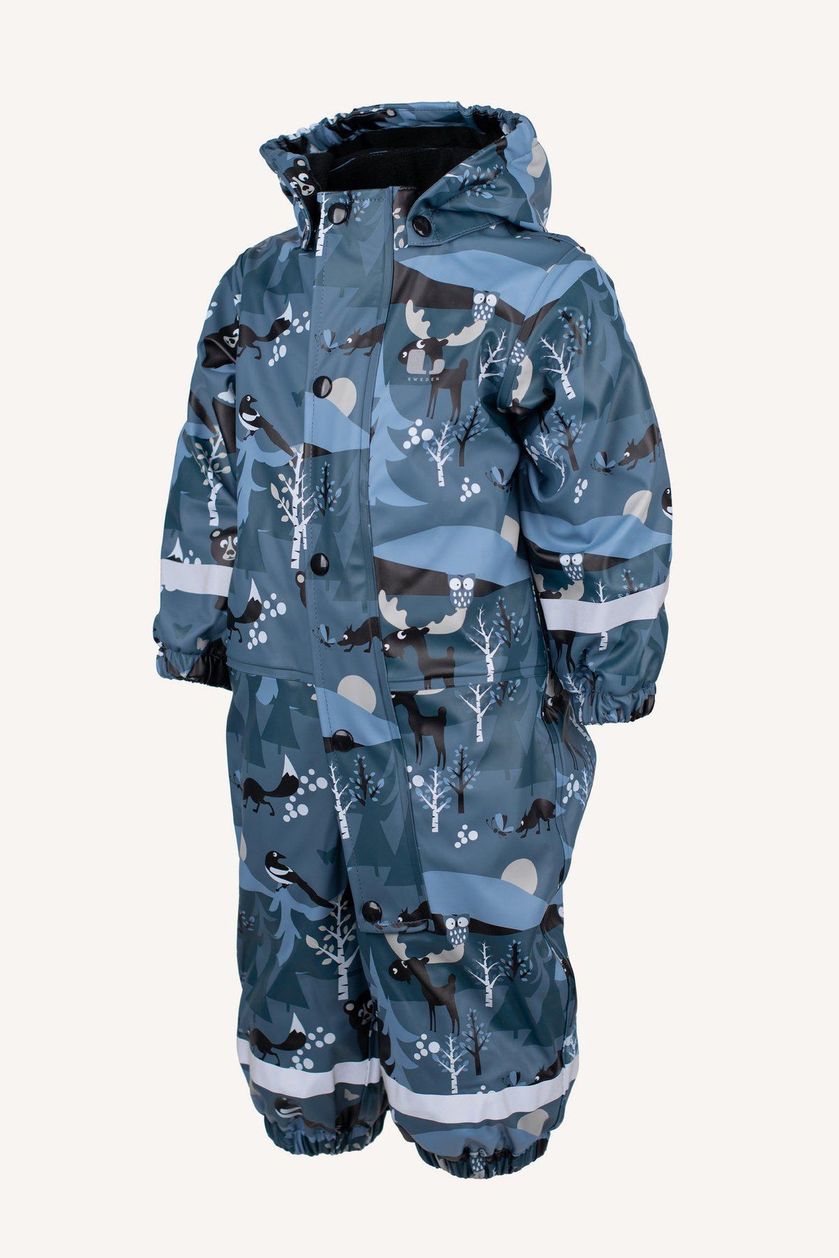 Smidig regnoverall med fleecefoder som funkar perfekt för slaskiga och blöta dagar och håller ditt barn torr och varm. Materialet är i PU med en vattentäthet på 8.000 mm vattenpelare och svetsade sömmar så att inget vatten ska kunna komma in. Avtagbar huva, reflexdetaljer och avtagbara fotstrappar. Produkten är OEKO-TEX® Standard 100-certifierad.