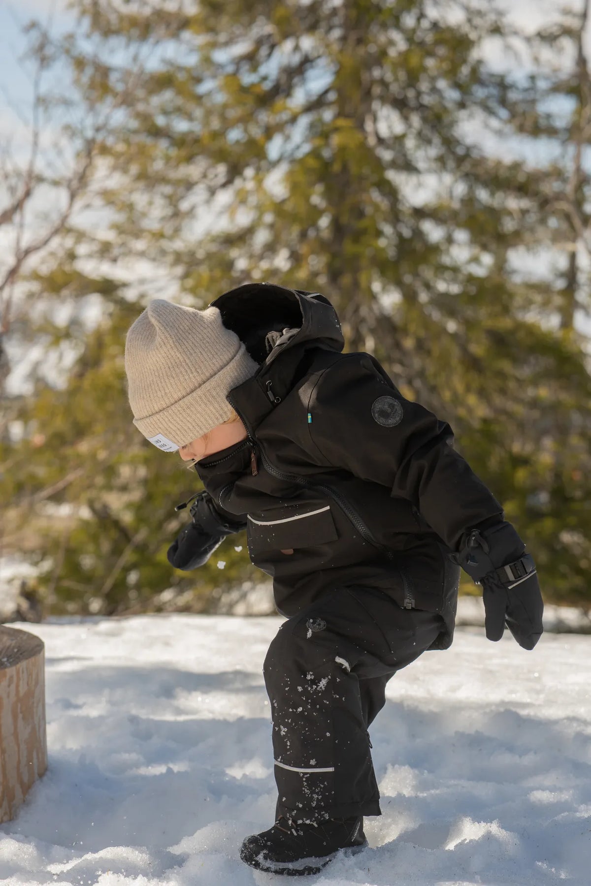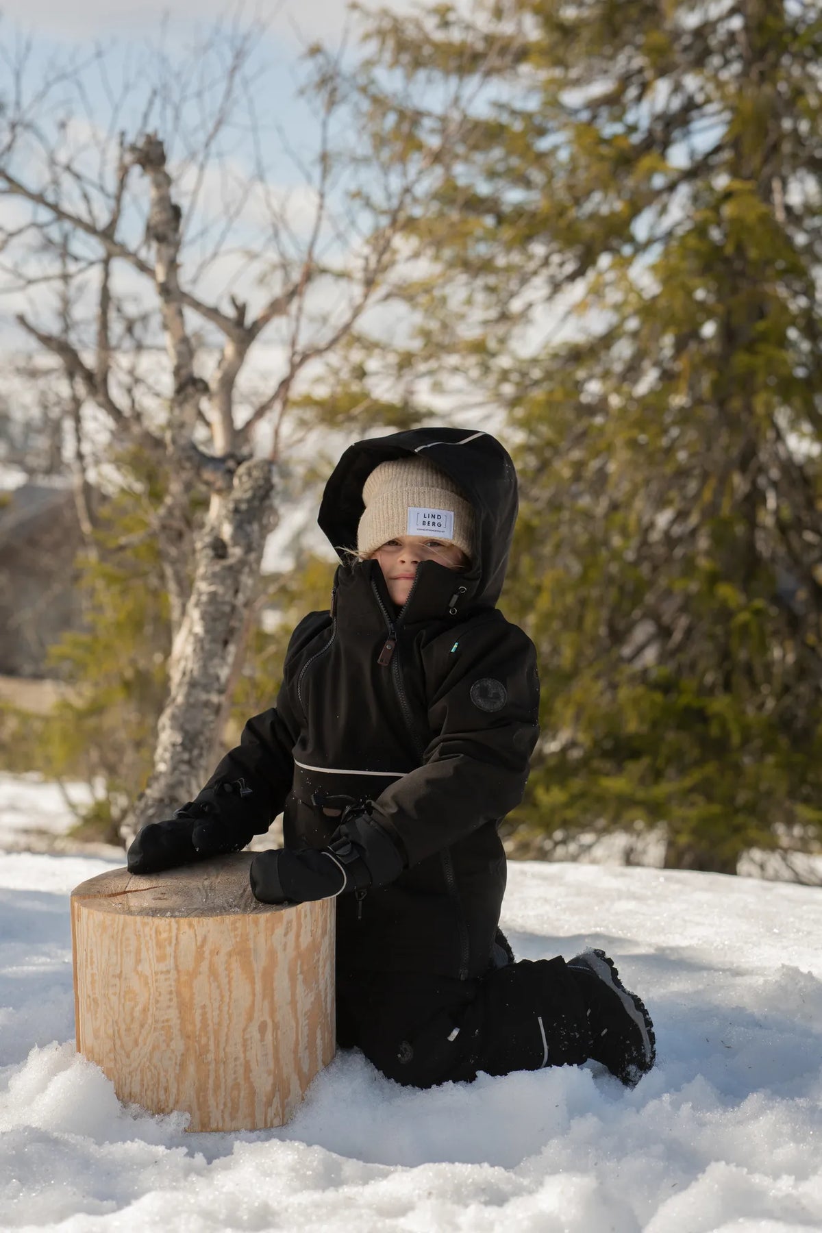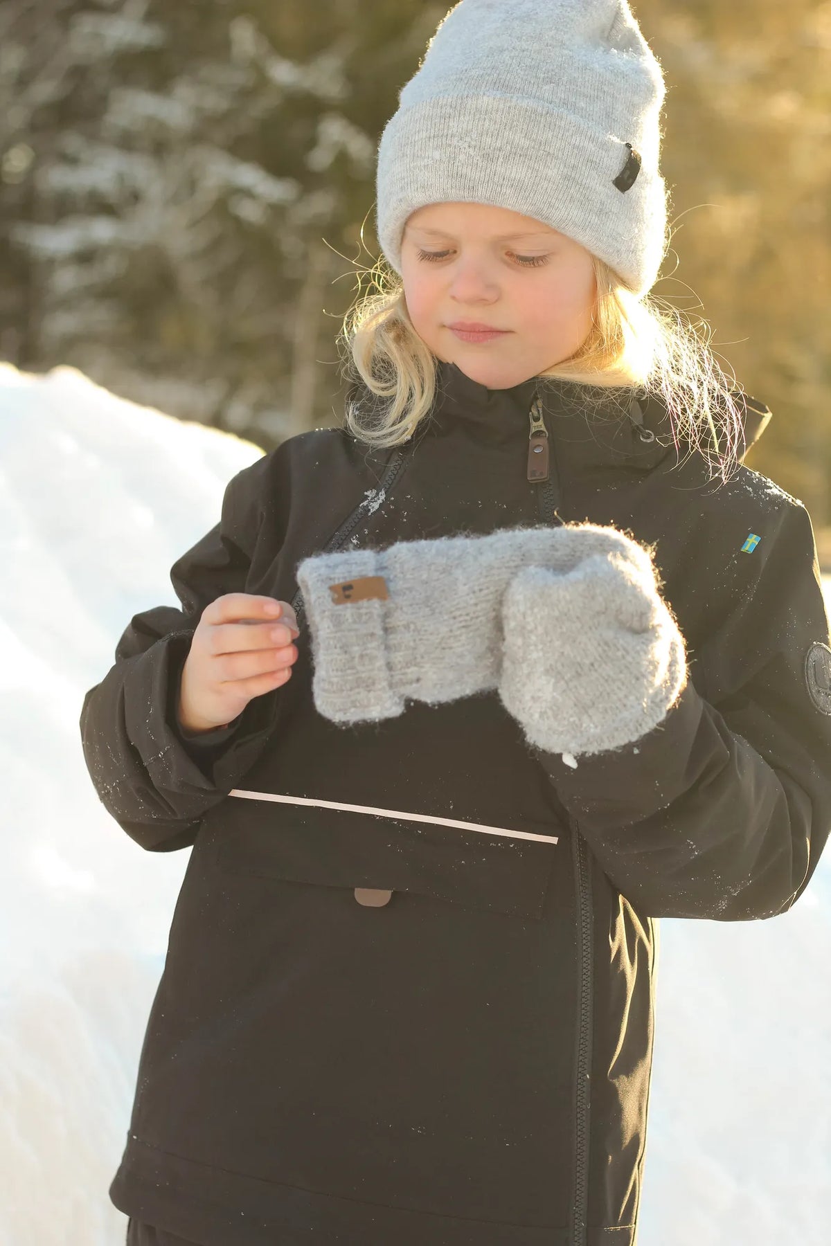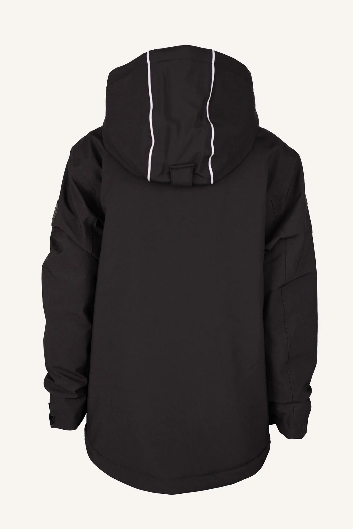 Anorak är en smidig vinterjacka, gjord i ett stretchigt och mjukt material med en värmande stoppning som gör att den klarar många minusgrader. Den har en hög vattentäthet och god andningsförmåga, vilket minimerar risken för att svett kyler ner ditt barn och du jobbar enkelt med lager-på-lager då jackan är fodrad i nylon. Ärmsluten är justerbara och har praktiska lycramuddar med tumhål samt "grow cuff", som gör att du kan förlänga ärmlängden genom att sprätta upp en söm på insidan. Jackan har också dragsko längst ner, en lång och en kort frontdragkedja, två i en-ficka på magen (där ena fickan öppnas/stängs med kardborre och andra med dragkedja) och reflexdetaljer. Huvan är justerbar och avtagbar.