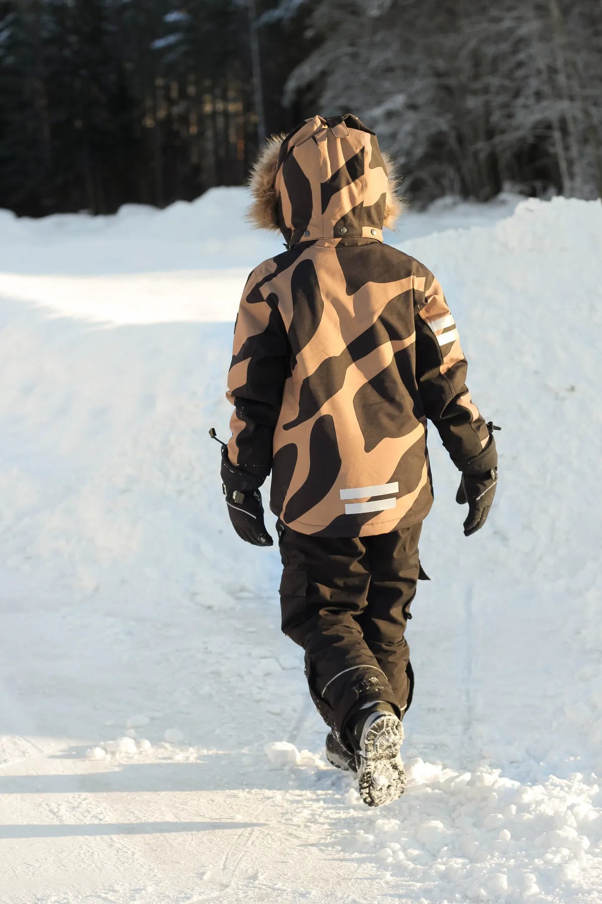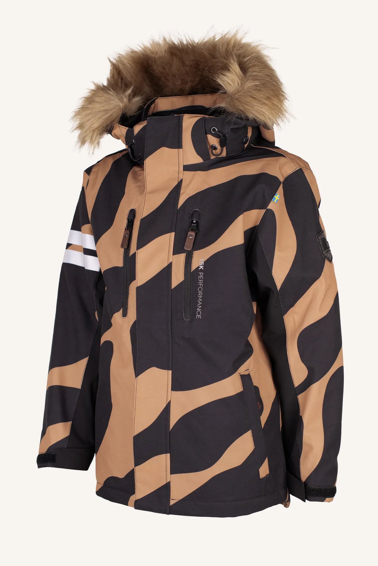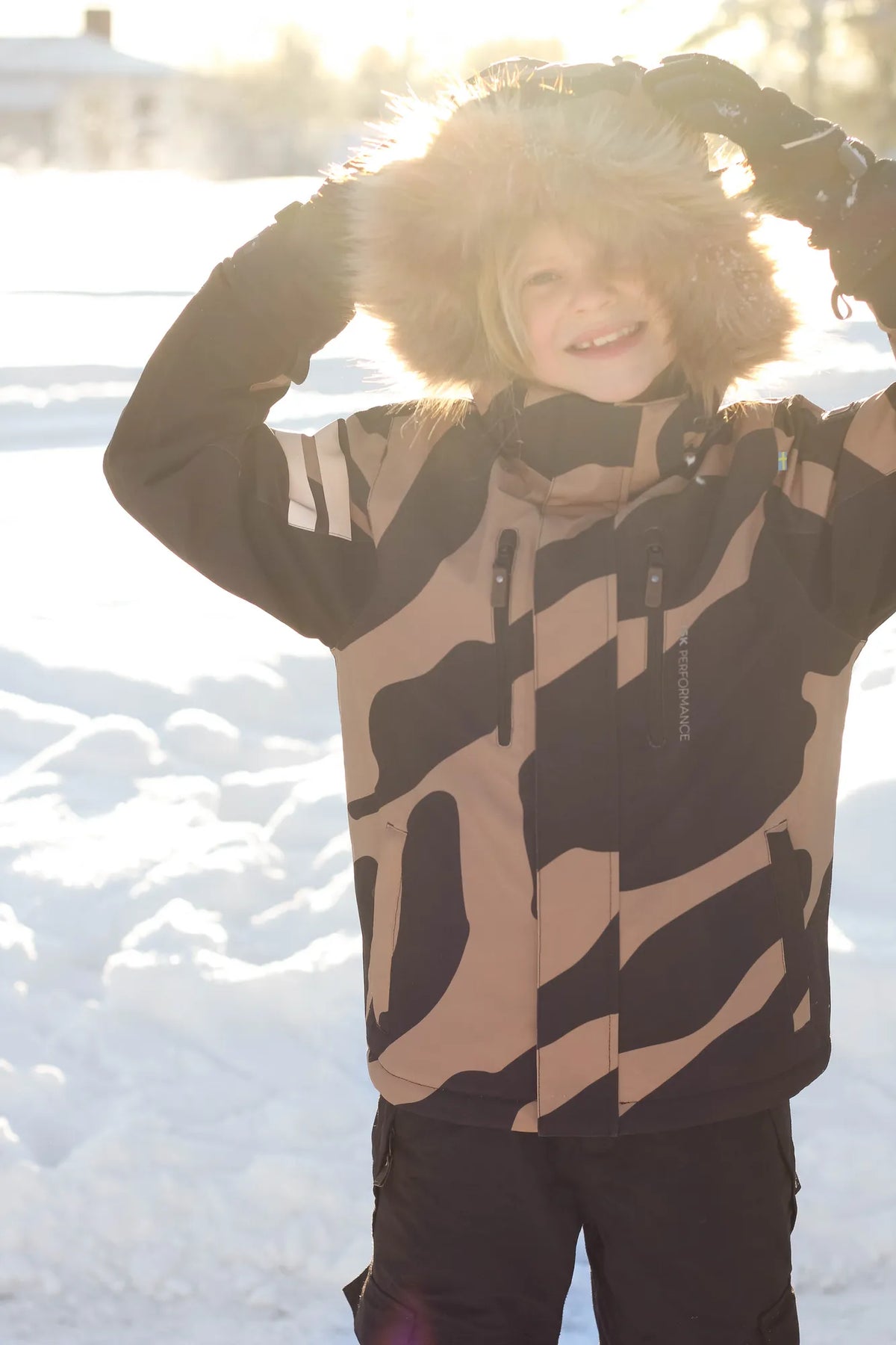 Colden är en varmt vinterstoppad och vattentät jacka med funktionella egenskaper som funkar lika bra på skolgården och förskolan som i skidbacken. Den är tillverkad i ett mjukt och stretchigt material med hög vattentäthet och god andningsförmåga. Jackan är fodrad med fleece i ryggen och nylon i övrigt. Ärmsluten går att justera med kardborre. Jackan är funktionell och utrustad med snölås i midjan, dragsko längst ner, tejpade sömmar och reflexer på ärm och rygg. Huvan är justerbar och avtagbar med syntetisk pälskant (pälsen i sig är också avtagbar). På jackan finns också två sidofickor och två bröstfickor som stängs/öppnas med dragkedja. Produkten är OEKO-TEX® Standard 100-certifierad.