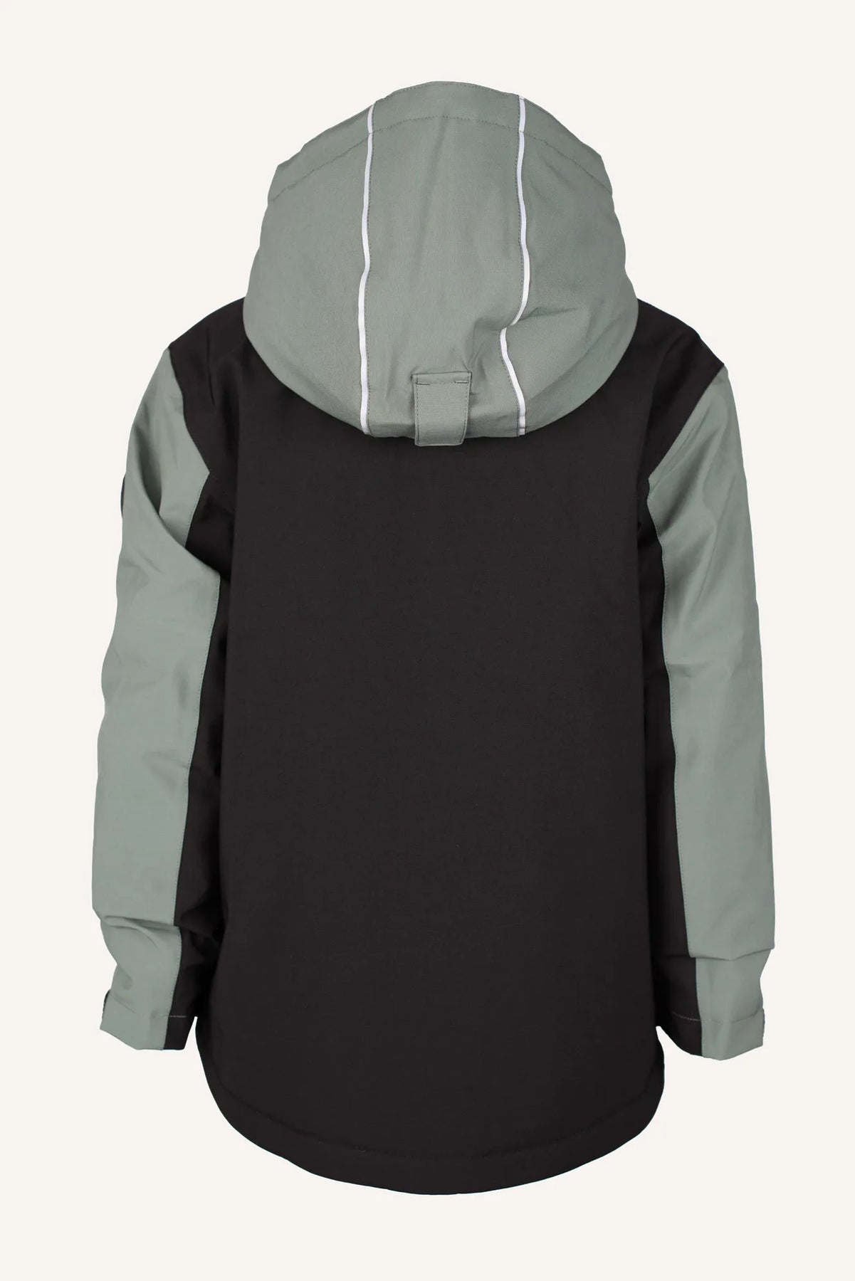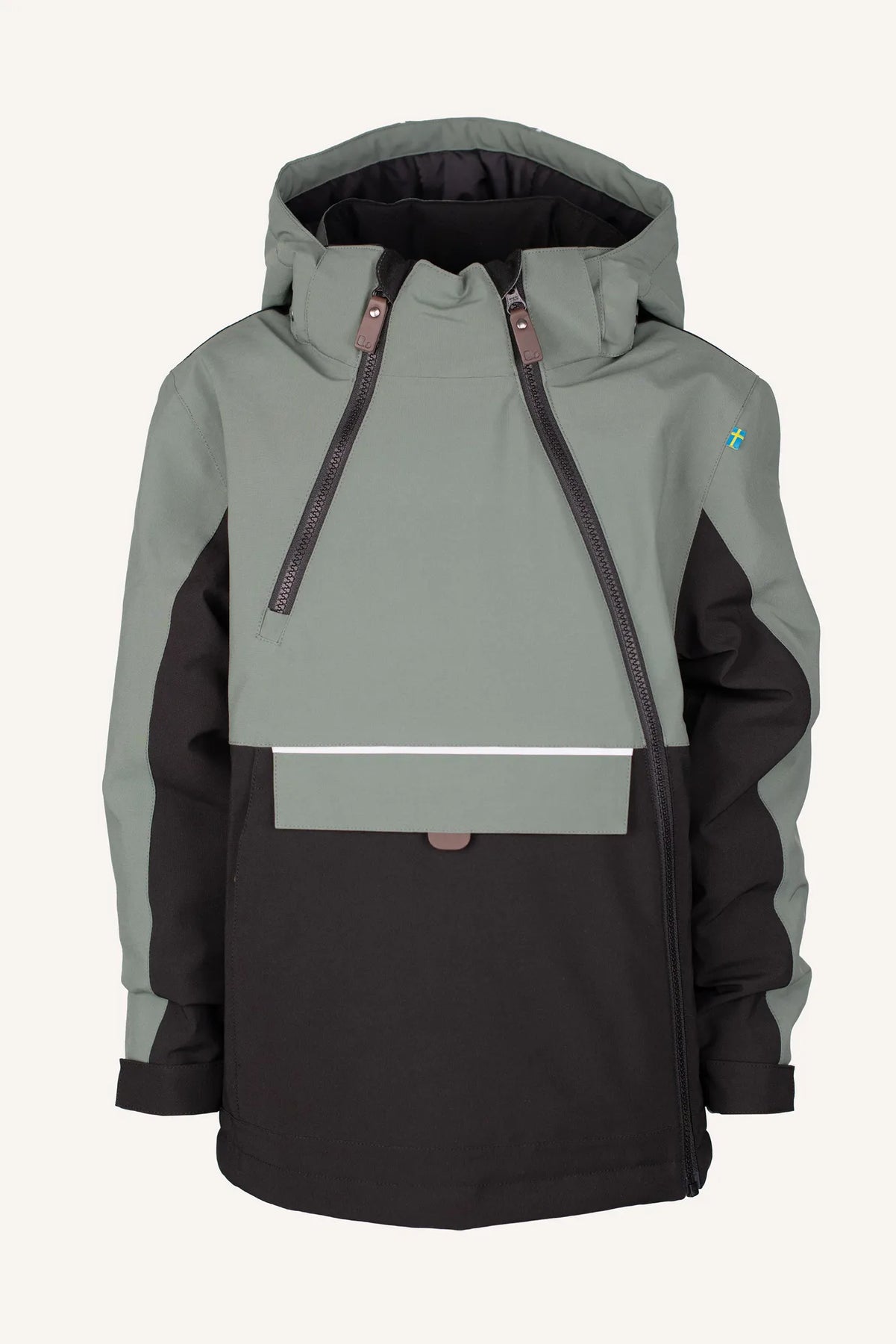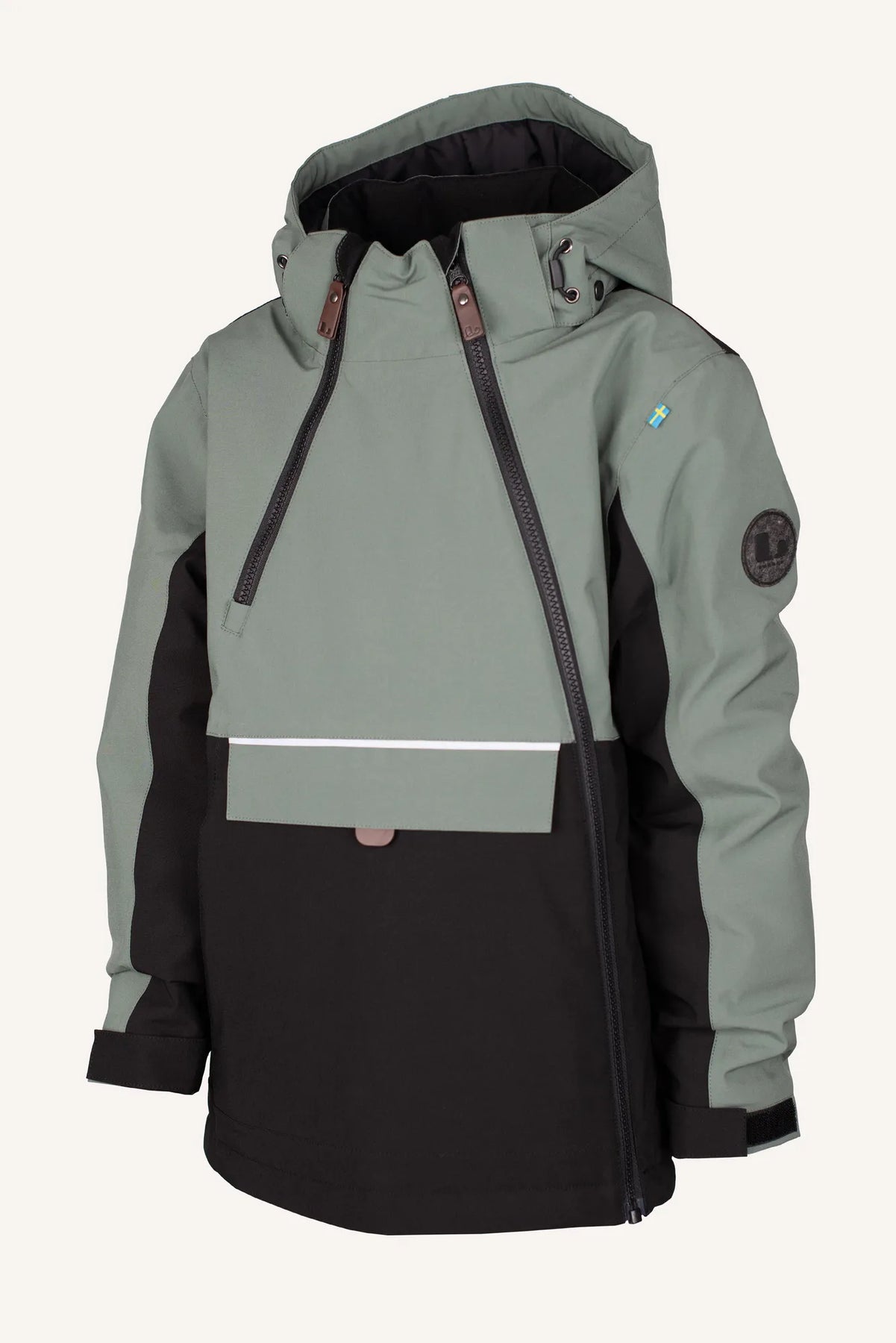 Anorak är en smidig vinterjacka, gjord i ett stretchigt och mjukt material med en värmande stoppning som gör att den klarar många minusgrader. Den har en hög vattentäthet och god andningsförmåga, vilket minimerar risken för att svett kyler ner ditt barn och du jobbar enkelt med lager-på-lager då jackan är fodrad i nylon. Ärmsluten är justerbara och har praktiska lycramuddar med tumhål samt "grow cuff", som gör att du kan förlänga ärmlängden genom att sprätta upp en söm på insidan. Jackan har också dragsko längst ner, en lång och en kort frontdragkedja, två i en-ficka på magen (där ena fickan öppnas/stängs med kardborre och andra med dragkedja) och reflexdetaljer. Huvan är justerbar och avtagbar.