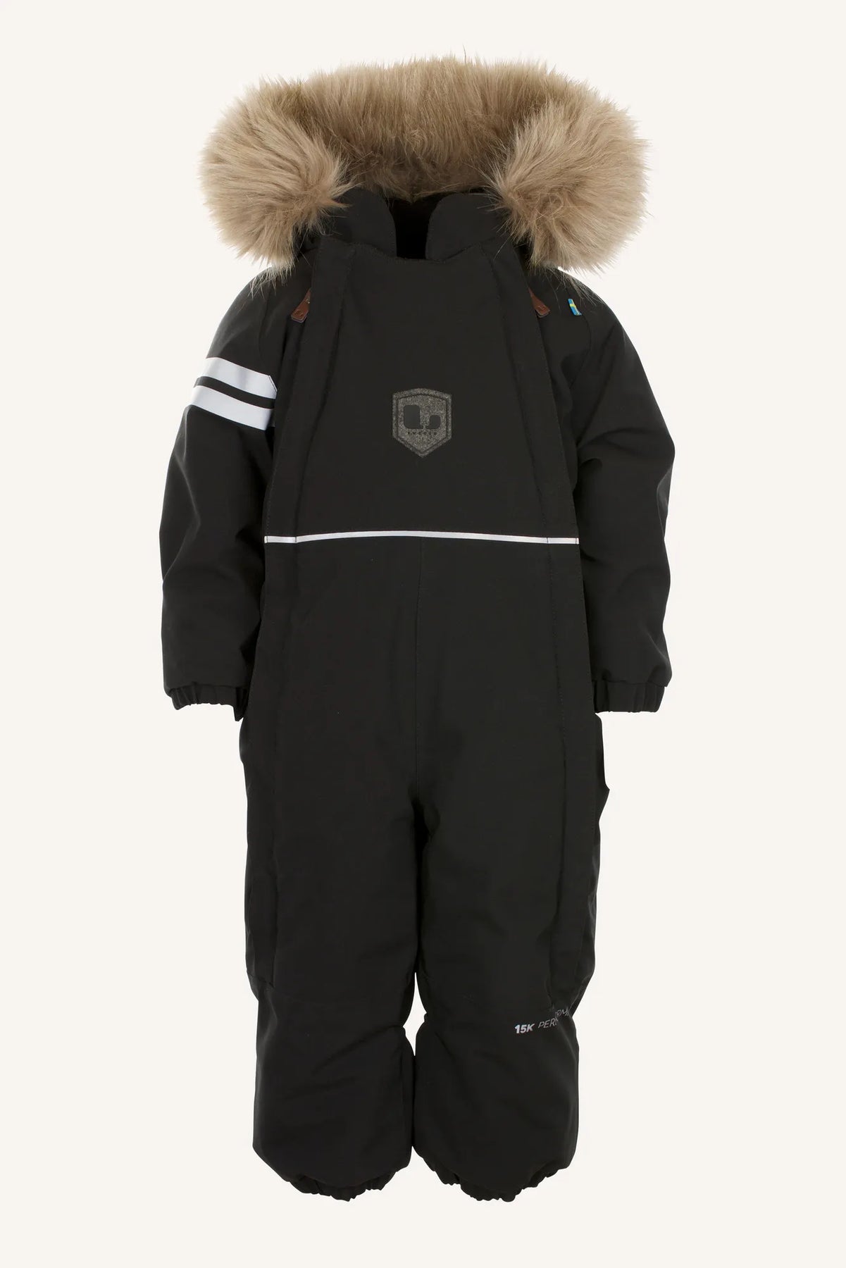 Colden är en varm, smidig och mjuk vinteroverall för de minsta, tillverkad i ett extra mjuk och stretchigt material. Den är varmt fodrad i fleece och har resår i ärm och benslut, fotstrappar och dubbla dragkedjor som gör det lätt att öppna upp när du ska klä barnet. Overallen har övervik för händer och fötter, reflexdetaljer och avtagbar huva med syntetisk päls (pälsen i sig är också avtagbar). Produkten är OEKO-TEX® Standard 100-certifierad.