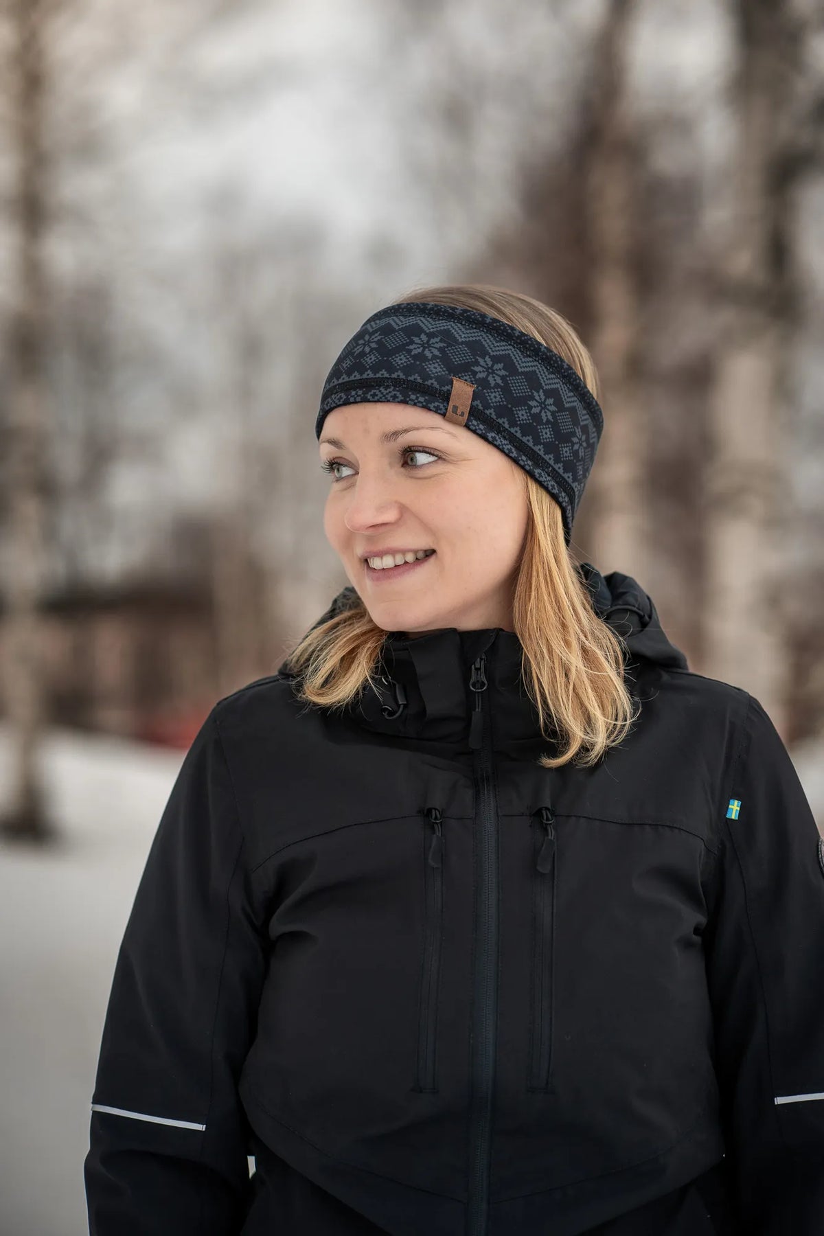 Dorotea headband is made of a flexible polyester material with fleece lining that regulates heat and transports moisture efficiently. Perfect for active kids and adults. Has a warming fleece lining.