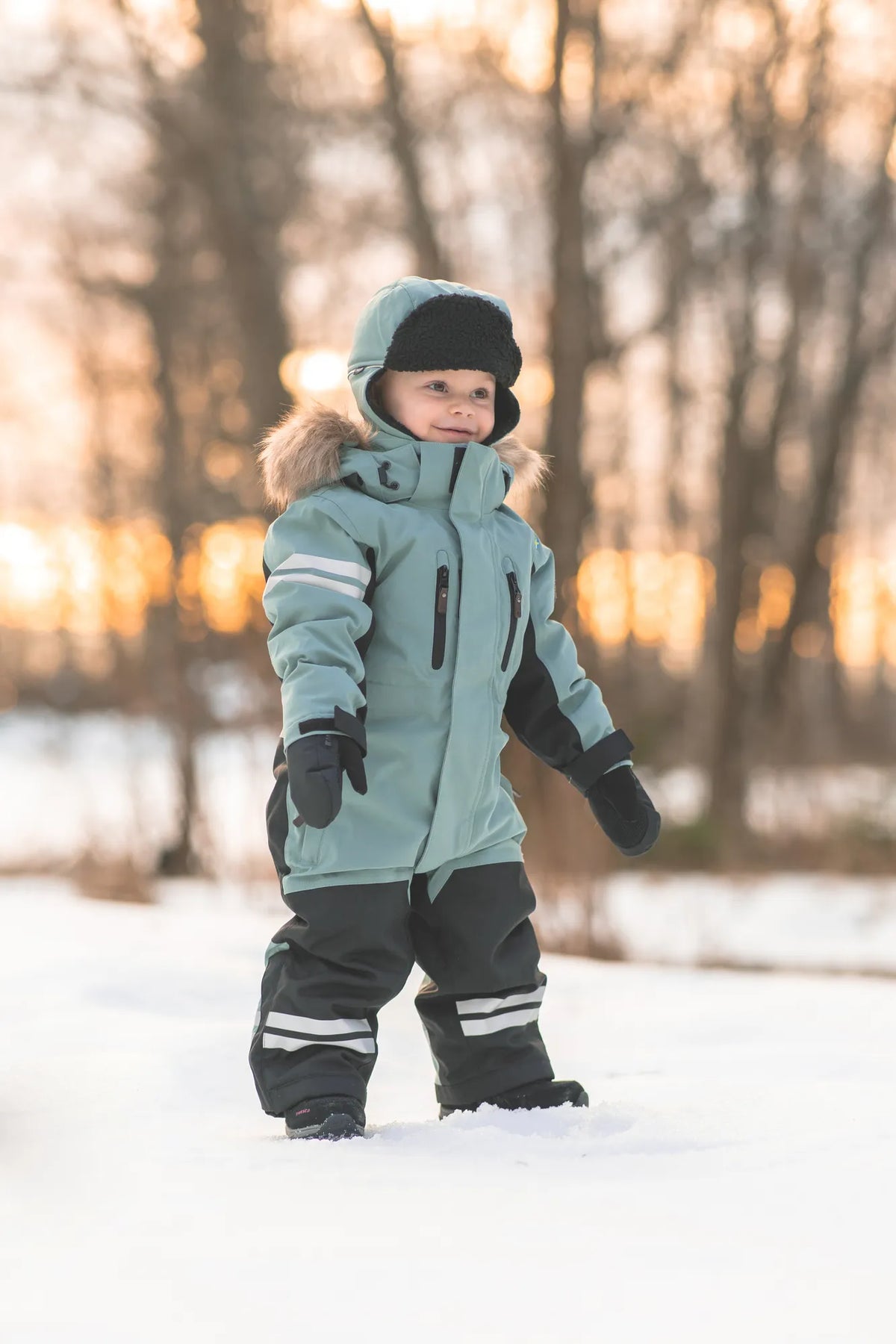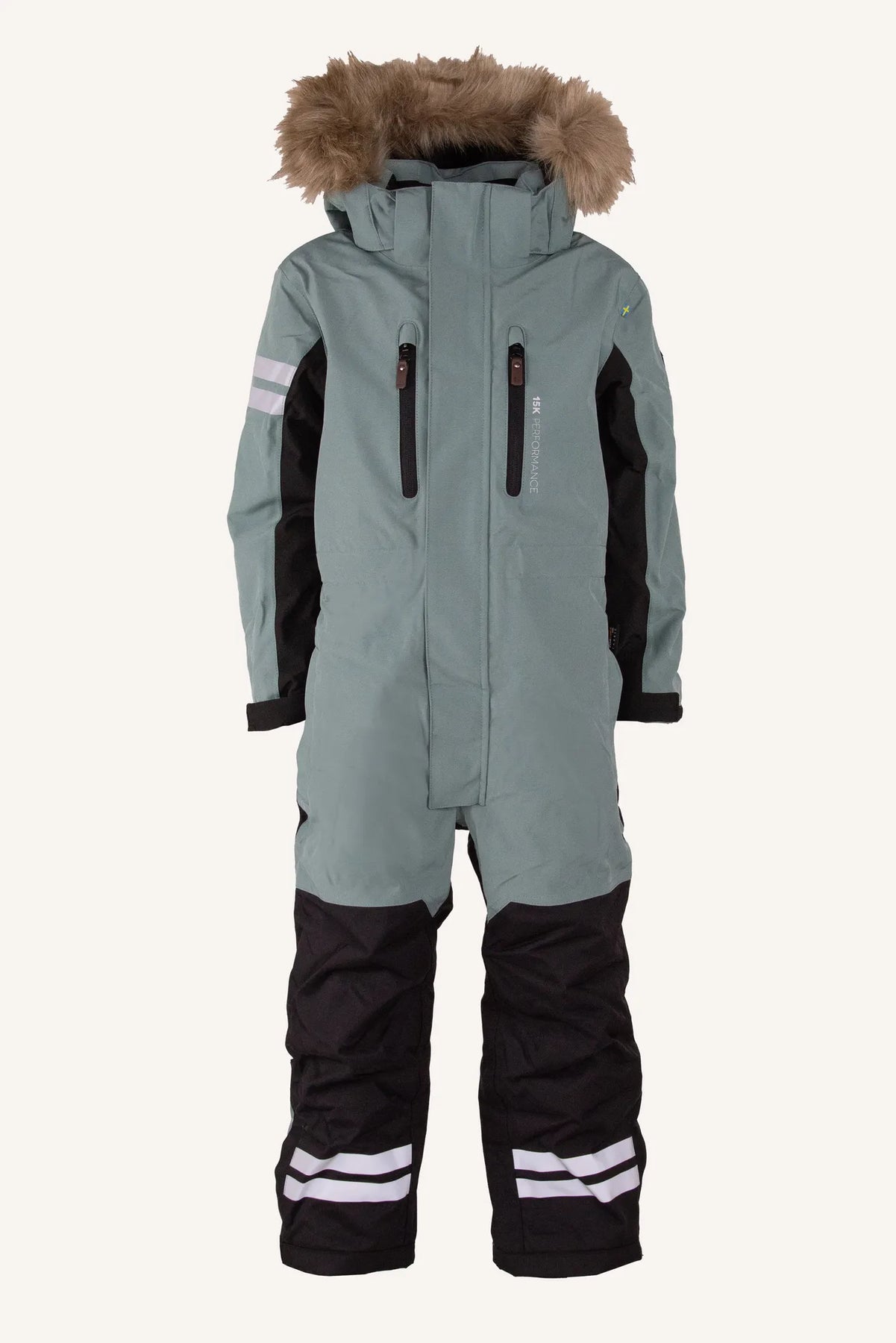 Colden winter overall is comfortable and functional with a warm fleece lining. The material is soft and stretchy with a high waterproofness and good breathability that can withstand many negative degrees. The overall is functional and equipped with extra reinforced material in Cordura on the knee and seat, several reflective details, adjustable with velcro in sleeve ends and an adjustable and removable hood with synthetic fur. The overalls also have two side pockets and two chest pockets, the leg ends have foot straps, snow lock and are adjustable with velcro so you easily can put on winter boots. The product is OEKO-TEX® Standard 100 certified.
