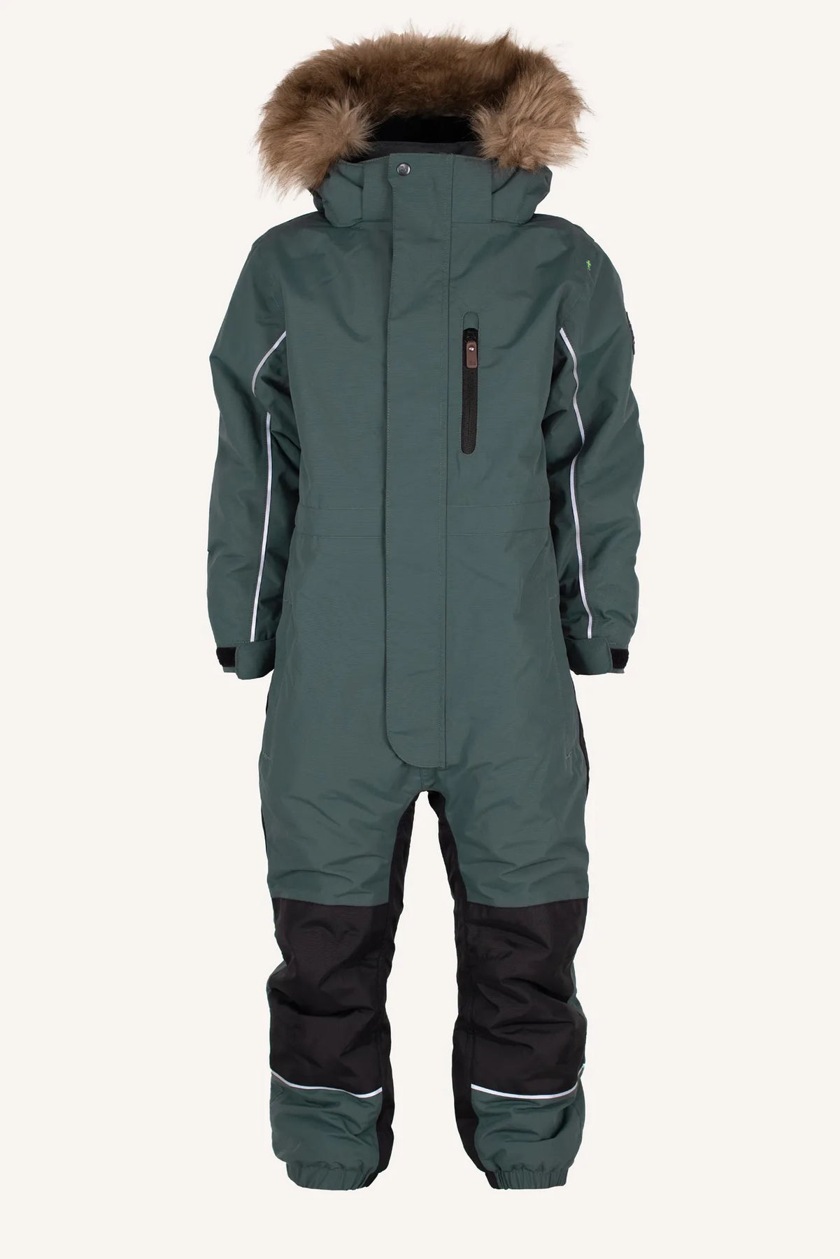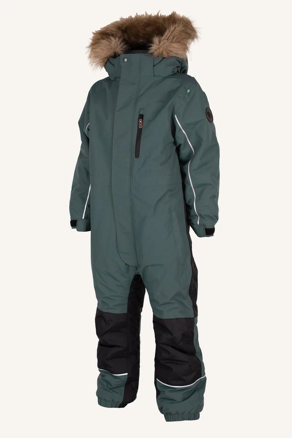 Nordic is a warm, flexible and waterproof winter overall with an extra durable material on the knees and seat. The coverall is completely wind and waterproof, lined with nylon that allows you to easily work with layers, has elastic band in the sleeves and leg ends, removable foot straps and snow locks. It also has lycra cuffs at the sleeve ends that close tightly, adjustable waist from the inside for the best fit and a removable hood with synthetic fur (also removable). Reflective details are visible both front and back. The front zipper is covered to keep out wet snow and it has three zip pockets.