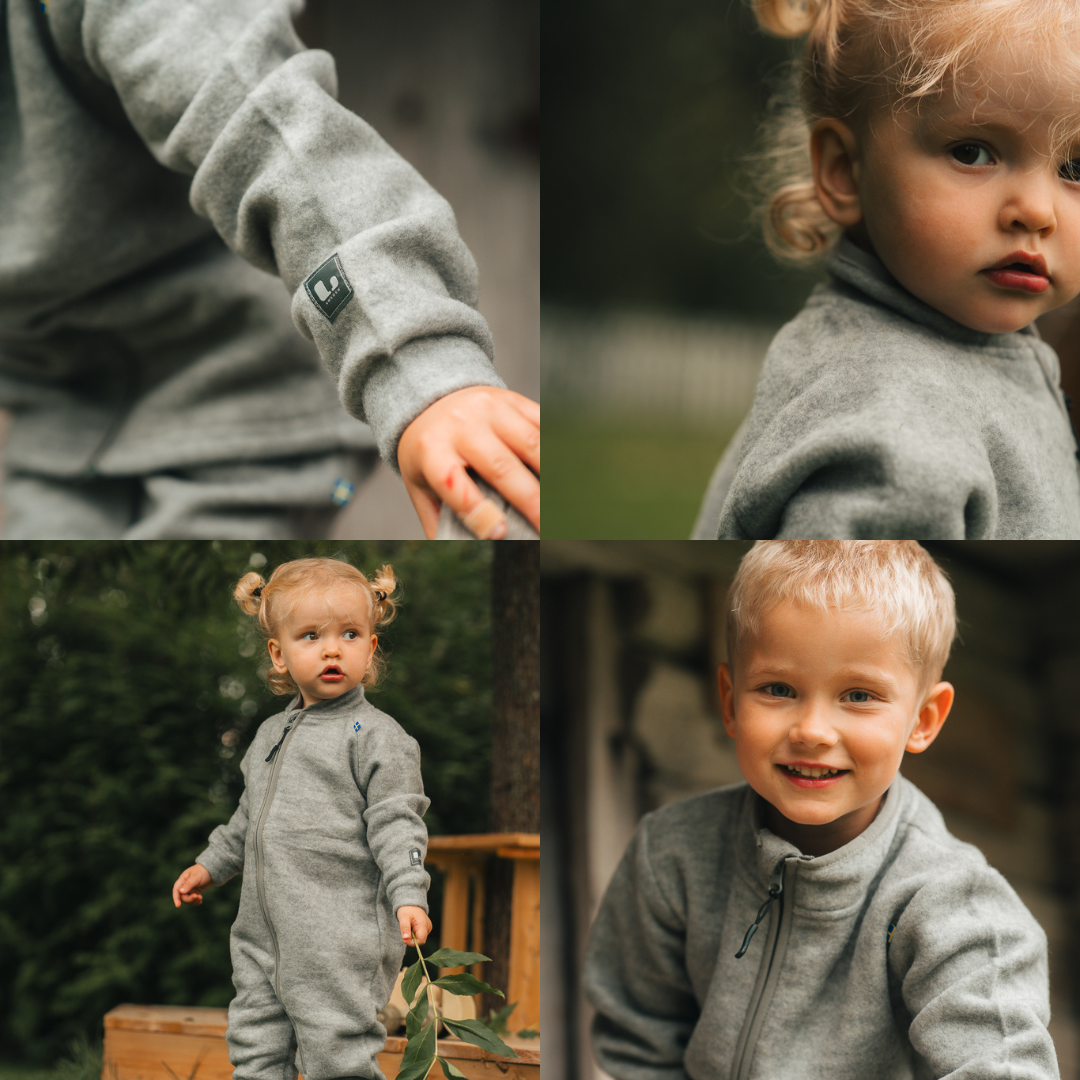 Loe comes as a jacket, pants and baby overall in one color. Soft, warm and wonderfully (g)oolly. Easy to wear, easy to combine and always comfortable when the temperature gets colder.