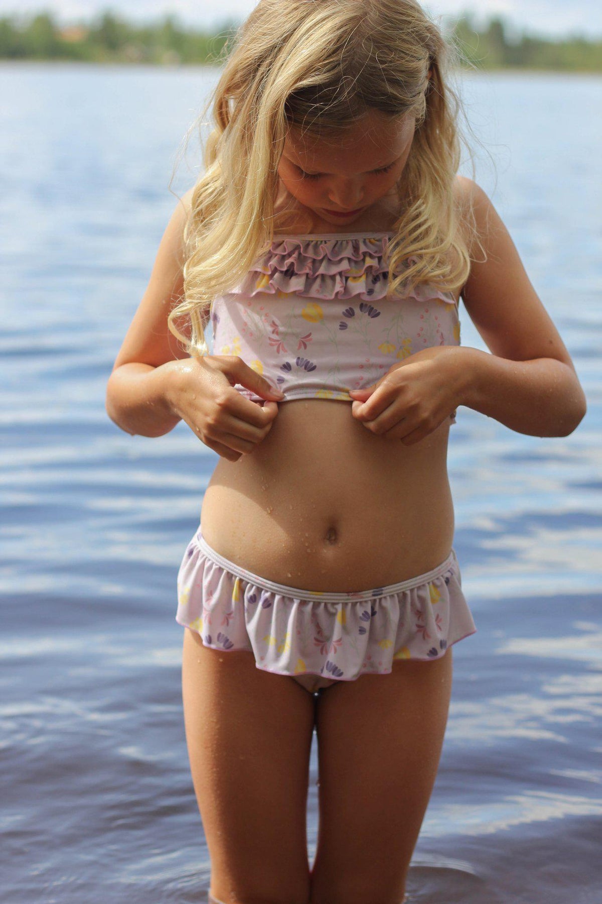 Bikini med volanger, extra foder fram och axelband som bildar ett kryss i ryggen. Toppen har smockdetaljer bak för en skön och följsam passform. Materialet har en solskyddsfaktor på 50+. Produkten är OEKO-TEX® Standard 100-certifierad.