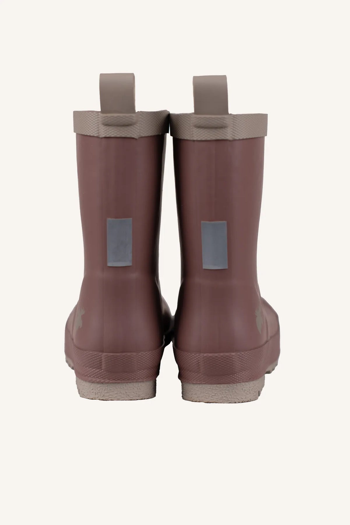 Joustavat kumisaappaat PVC-vapaata luonnonkumia, jossa pitävä pohja ja heijastava yksityiskohta selässä. Täydelliset saappaat sadepäiviin! Vältä kuivaamista kuivauskaapissa, mieluiten anna niiden kuivua ilmassa pidempään käyttöikään.